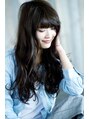 ロング ふわふわ ウェーブ バング厚め 前髪ナチュラル カラー 暗め クール かっこいいやわらかい 綺麗 デジタルパーマ[ワフトヒルズ津田沼]