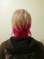 ミルクティーベージュをベースにえり足は大胆にディープピンクで色の差を出した2トーンカラー!ミルクティベージュの柔らかな印象に加え、大胆にカラーしたディープピンクと大幅に刈上げたハードなアクセントが混同した甘辛ミックススタイル☆