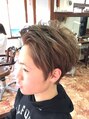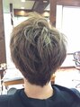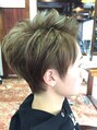 ストレートにしていると単調になりやすいカラーリングにメッシュを加える事により動きの出やすいショートスタイルを作りました。今の時期は暗めの装いが多くなるので髪の色をハイトーンにする事により、印象を重く見せない様にしました。