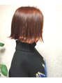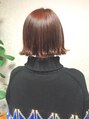 長さはアゴラインでカットします。カラーは9トーンのレッドピンクです。外ハネ風にセットするのもぱつっと感が強調されて可愛いです☆
