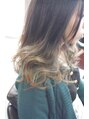 人気のグレージュ系グラデーションカラー。ブリーチを毛先にしています。