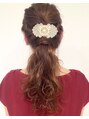 なみなみウェーブに巻いて前髪からあみこみをしてくるりんぱして結んだだけの簡単アレンジです!!!