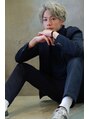 ブリーチカラーのプラチナアッシュがクール。前髪を掻き上げることで、一気にオシャレな雰囲気に!セットアップのスーツスタイルにもバッチリ合う!!