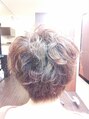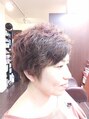 パーマで動きと立ち上がりをつけ、カラーはワインレッドで明る過ぎずツヤを出し、前髪を短めのアシンメトリーで。
