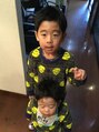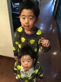 5歳と2歳の兄弟チョイモヒカンサイドとバックは刈り上げました。ワックスで仕上げましたが、お兄ちゃんの方はカットが終わってから、あばれていたので、なぜか違う髪型になりました。