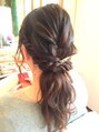 ヌケ感たっぷりのゆるーい三つ編みがポイントです。前髪の、おくれ毛がポイントです。