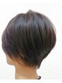 前から見るとアゴラインまで長さがあるので短すぎず、ですが後ろは短く、丸みのあるシャープな前下がりのラインが印象的です☆顔周りはあまり出したくない方にはいいと思います。カラーは暗めのブルーバイオレット。オフィスにも合う大人なスタイル。