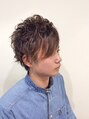 前髪とサイドの髪はパーマをあてないことでナチュラルさを残し、トップやうしろにパーマで動きをだしています。見る角度によって相手にあたえる印象が変わるスタイルです。ツーブロックがありでもなしでも出来るスタイル!