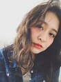 センターパートのかきあげバングにグレージュの透け感スモーキーカラーを。ほつれ感のあるパーマとハイライト、ローライトで、エフォートレスなスタイリングに。仕上げはセミウェットな質感で、ツヤ感と束感を。