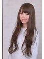 ロングでも重たさを感じさせない。 表面の角を取るように丸くレイヤーを入れたワンレングスベース。ゆるいカールと流し前髪で愛らしさ抜群の可愛いヘアに。