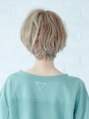 大人かわいいショートスタイル。ゆるふわパーマで、毛先の動きをつけ、全体的にエアリーな軽さをだしました。年齢問わず、人気のショートスタイルです。もともとクセのある方はクセをいかしたカットだけで調整も可能です。【EARTH熊本下通店】
