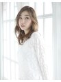 鎖骨ラインで大きく揺れる大きめCカールでさりげないオシャレ感をイン。透明感のあるクリームアッシュカラーには柔細な毛質に見せてくれる効果も。