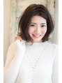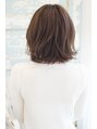 カット:ベースはやや前下がりのボブベースです。重くなりすぎないように表面に軽くローレイヤーを入れ動きをだします。前髪はサイドとつなげまとまりやすく。カラー:7トーンのショコラブラウンです。ブラウンベースにする事で、艶と柔らかさを出します。