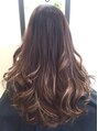 肌になじみやすいベージュ系のカラーです。カラーの透明感が出るように全体的に軽く巻いて可愛らしい雰囲気になってます。