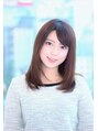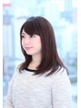 毛先中心に軽さを入れた清楚系ミディアムレイヤー。あまり軽くしすぎないから毎日安定したスタイリングを得る事ができます。前髪は厚めに流しす事でツヤ感を。カラーリングはバイオレットブラウンでさらに清楚系を演出しました。