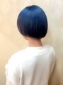 ブリーチ後、極彩色のブルーをしっかり入れて個性的に☆カットはコロンと可愛らしいマッシュボブに仕上げました