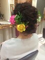 センターパートで編み込みを入れた古典風なセットです。生花をつければ華やかな雰囲気。着物スタイルにオススメなセットです。