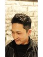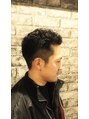 サイドはすっきり刈り上げてはちうえ部分にパーマ。
