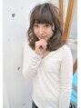 フルバングの可愛らしさに強めのカールで華やかさをプラス。カラーは毛先ハイライトにこの春イチオシのフレンチセピアベージュです。