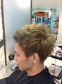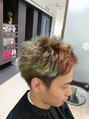 様々なペールカラーで遊びを効かせたメンズスタイル。スッキリ刈り上げたサイドとネープと長めのトップでバランスよく仕上げました。