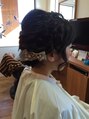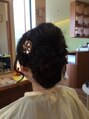 結婚式のお呼ばれヘア。波巻きをしてから セットしてあります。ユルフワな 質感で 可愛らしく。
