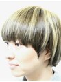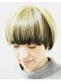 重ためのバングからつながるマッシュボブ。重たくなりすぎないように、表面にパネルでブリーチ。