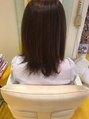 肩にかかる位のミディアムボブに超音波エクステをつけて胸下までのロングヘアーにしました。毛先を緩く巻くと、地毛ともよく馴染み、ゆるふわロングヘアーの完成です♪