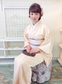ウェーブのふんわり感を残した上品なシルエットに仕上げました。ヘアアクセサリーをつけてより華やかに。このヘアアクセサリーは着付け担当者の手作りです!