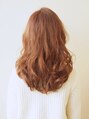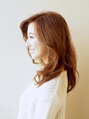 かきあげバングに耳下からゆるめにかけたパーマが女性らしさを演出します。イメージは愛らしい女性らしさを作り上げました。女性から見ても可愛らしく、柔らかさを演出してませんか?カラーは少しピンクを混ぜたフレンチカラーに。