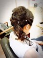 全部上げないでカジュアルなスタイルにも合わせやすいセットスタイルです☆編み込みを少しづつ引き出すことで立体感のある仕上がりになります。アクセントでパールピンを付けることで人と差を出せます!
