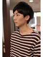 サイドは厚めに、カリアゲてツーブロックにしてかぶしています。バックの厚みはサイドよりも、厚くして全体的に重ためのスタイルですが、根元から中間付近の毛量を減らしてバランスをとっています。