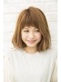 眉上バングのオシャレボブミディスタイル☆ワンカールでふんわり、スタイリングで動かしてちょっとハネ感も楽しめるスタイルです。バングも透け感のある質感がポイント☆