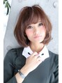 シンプルなボブに少しレイヤーが入った子顔ボブ。目上ギリギリバングとフワッとレイヤーで、目力アップと、小顔効果が狙えますよ!!カラーはツヤの出るベージュブラウンです。