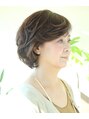 白髪を暗くしすぎないようにしているので根元が気になりにくいカラーです。くせを活かしてレイヤーを入れているカットはナチュラルにスタイリングできます。