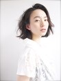 エアリーな動きがおしゃれな大人ボブ!ワンカール強のくせ毛風パーマです☆黒髪ならではの大人かわいいボブ !やや前下がりラインで、伸ばしかけの方にも◎かき上げバングで小顔にも!風が吹くと無造作な動きに♪大人ミューズなスタイルです!