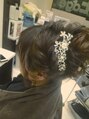 両サイドに大きな編込みを作りトップはカールでボリュームを出してまとめました。