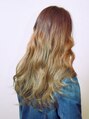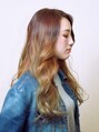 毛先にブリーチ後、全体に色をのせます。動きが出る程度に量を減らし、パーマでより動きを出せばグラデーションが良い感じになります。