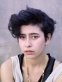 外国人のくせ毛のようなパーマをかけ、いい意味でやる気のない感じをだす。えりあしを短めにすることで、モード感をプラス。