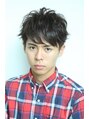 サイドとネープを刈り上げたスッキリショートなのですが、パーマをかけることにより柔らかさをだしセットも楽ちん。学生で校則が厳しい方にもオススメのスタイルとなっています。パーマは毛先中心にランダムに動くようにかけてラフさもだしています。
