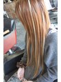 ベースはアッシュ系の明るめ、ハイライトに白系をランダムに入れています。前から見たときに奇麗に見える位置につけています。