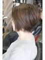 前下がりがベースの骨格補正カット。耳周りをすっきりと、後頭部にむかって形が決まるようにカットだけで形をつくっています。乾かしただけで決まるカットがポイント。カラーはアッシュベージュとハイライトのMIX.