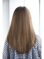 髪の毛に負担をかけず、柔らかい質感を出すには薬剤選定が大事です。ナチュラルなストレート感を出すためにカットも調整します。