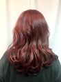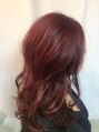 全体にナチュラルな厚み重みを残しつつも顔周りは他の部分よりも少しカットで重さをとるとふんわり感が出やすくなりやわらかい印象に!カラーも赤ベースに部分でピンクのメッシュが少しありアクセントになってるから動きがつけやすいですよ☆