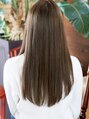 ストレートスタイルに髪色をハイトーンにする事で落ち着きながらカワイイを兼ね備えた雰囲気に。 人気のアッシュベージュで透明感を出しました。カットはあまりレイヤーを入れずに毛先のみ崩してツヤ感をキープ。スタイリングしやすいスタイルになりました。