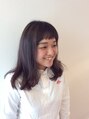 ワンレンでカットをして毛先だけワンカール緩めでコテでまいています。オン眉の前髪にはピンパーマで毛流れをつけました。カラーは黒髪にハイライトをいれて立体カラーです。