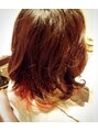 仕事で明るくできない(>_<)ということで、仕事中は縛って隠せるように襟足部分をインナーカラーしました(^_^)ブリーチ後、ルージュという色をのせて♪仕事中はもっと隠して縛りますが、今回は普段見せて縛る感じを載せました(^_^)