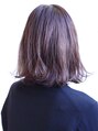 肩のラインに沿わせて自然な外ハネを意識。全体的にブラントな質感になる様に重めにカット。