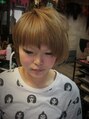 サイド、襟足を刈り上げて、正面はアシメなマッシュ系ボブに。バックは角度をつけて前下がりに作っています。ふわっとした丸みとシャープなラインがこのスタイルの特徴です。