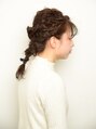 ベースをストレートアイロンで波巻きにし、大人の女性らしいゆるい編み込みおろしスタイルです。サイドはねじり編み込みで、後ろは、ゆるめに編んだ三つ編みでアレンジしました。