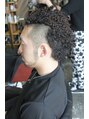 サイドだけ2ブロックに。そこ以外はショートレイヤーベース。パーマはUピンパーマでハードにかけています。